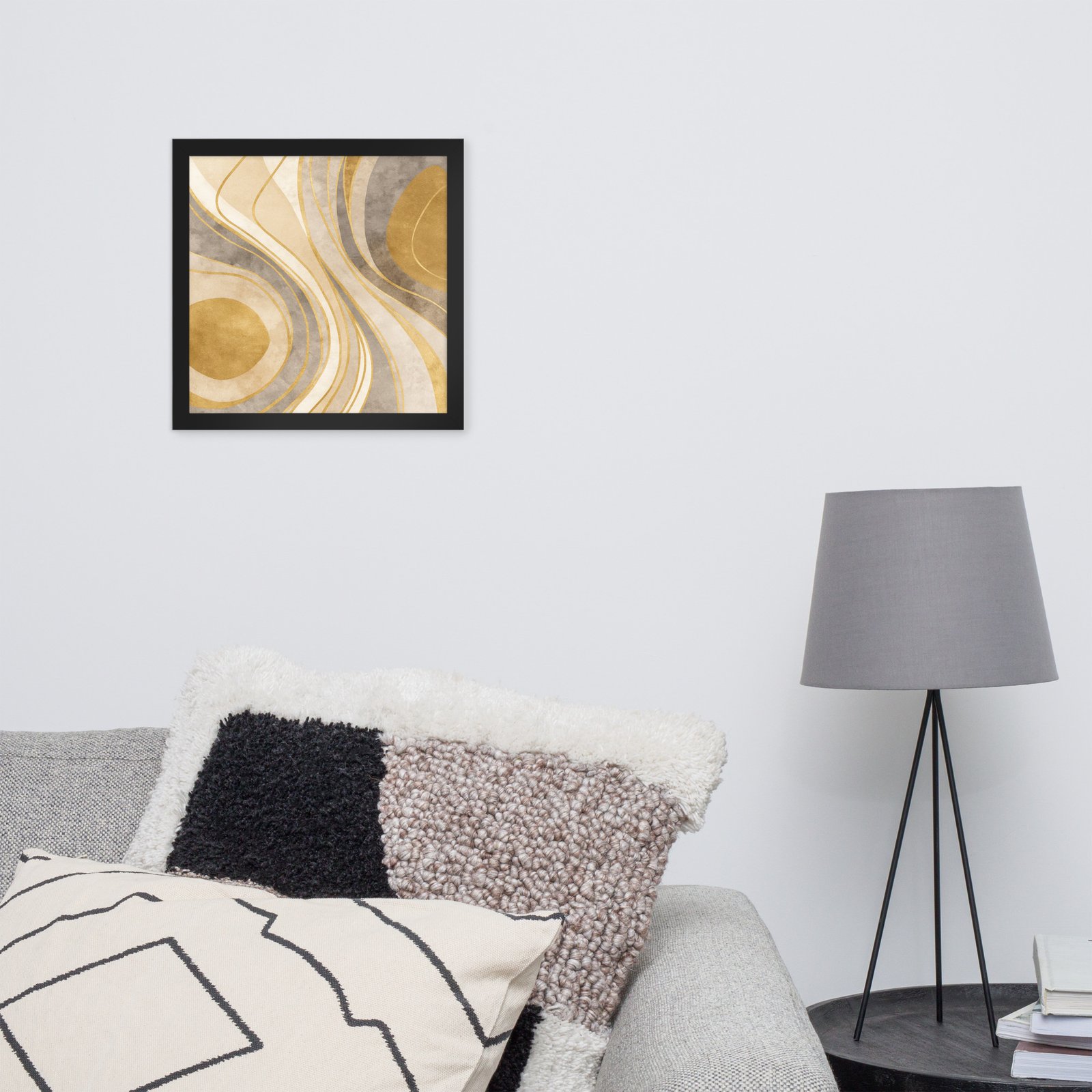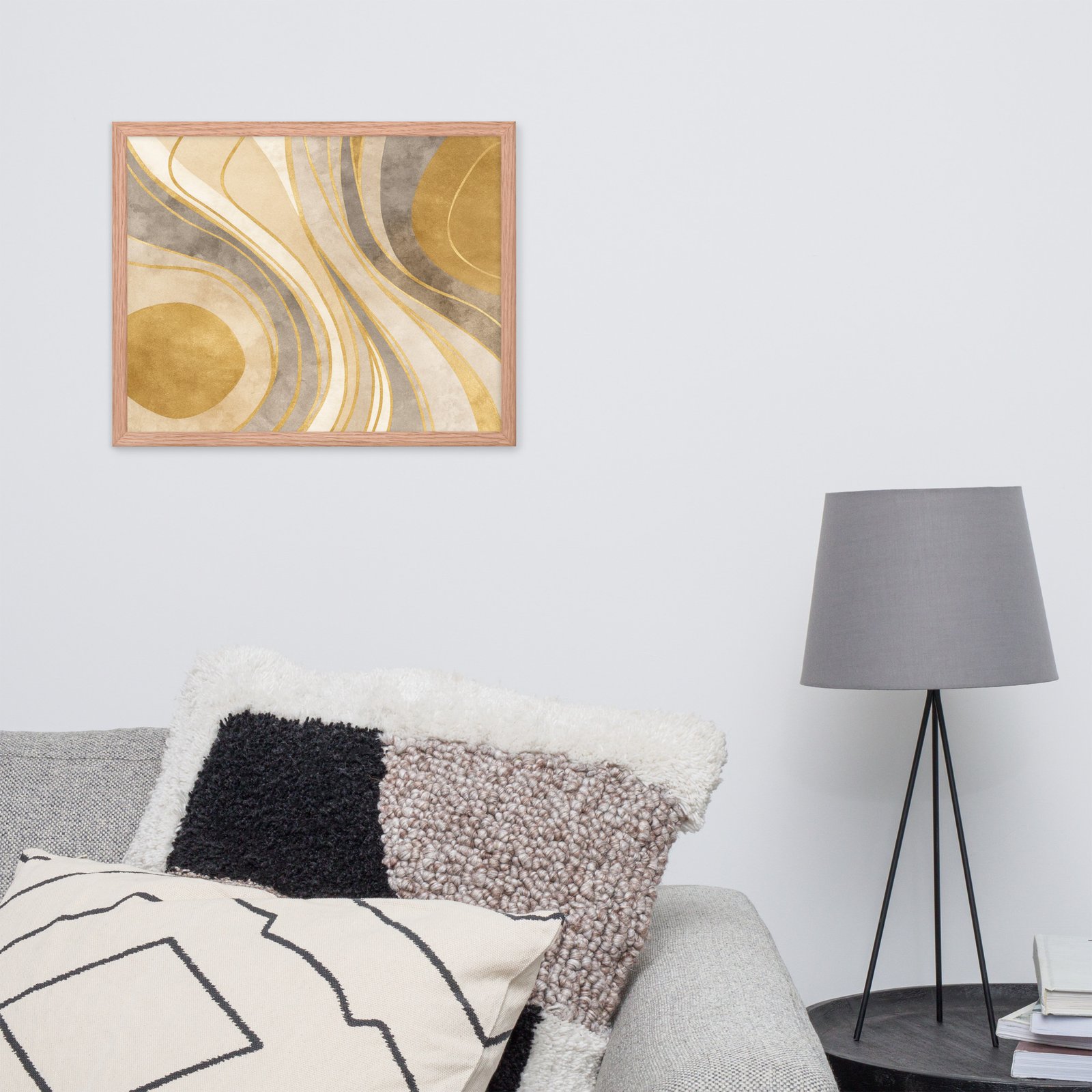 This artwork brings a sense of movement, balance, and sophistication to any room. Its rich golden tones and organic curves make it ideal for stylish living rooms, elegant bedrooms, office spaces, entryways, and curated modern decor.