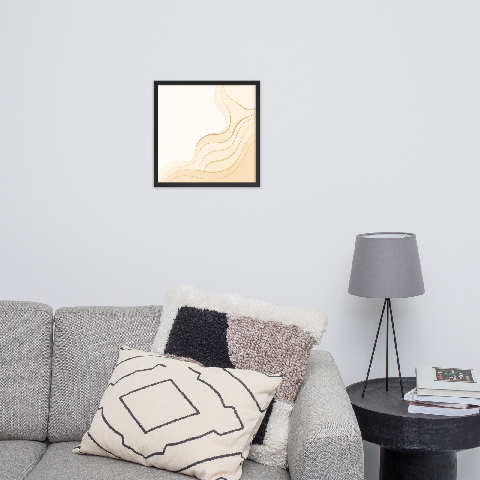 This artwork is presented in a sleek black frame with a clean white mat, enhancing the sophisticated balance between minimalism and warmth. Its neutral palette makes it an incredibly versatile decorative piece—perfect for living rooms, bedrooms, entryways, home offices, and curated gallery displays.