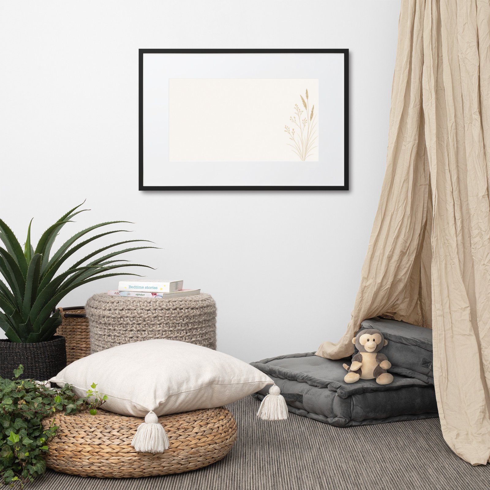 The generous negative space and refined botanical detailing make this print perfect for living rooms, bedrooms, offices, hallways, entryways, and modern gallery walls. It blends seamlessly with Scandinavian, Japandi, modern, contemporary, and boho-neutral interiors.