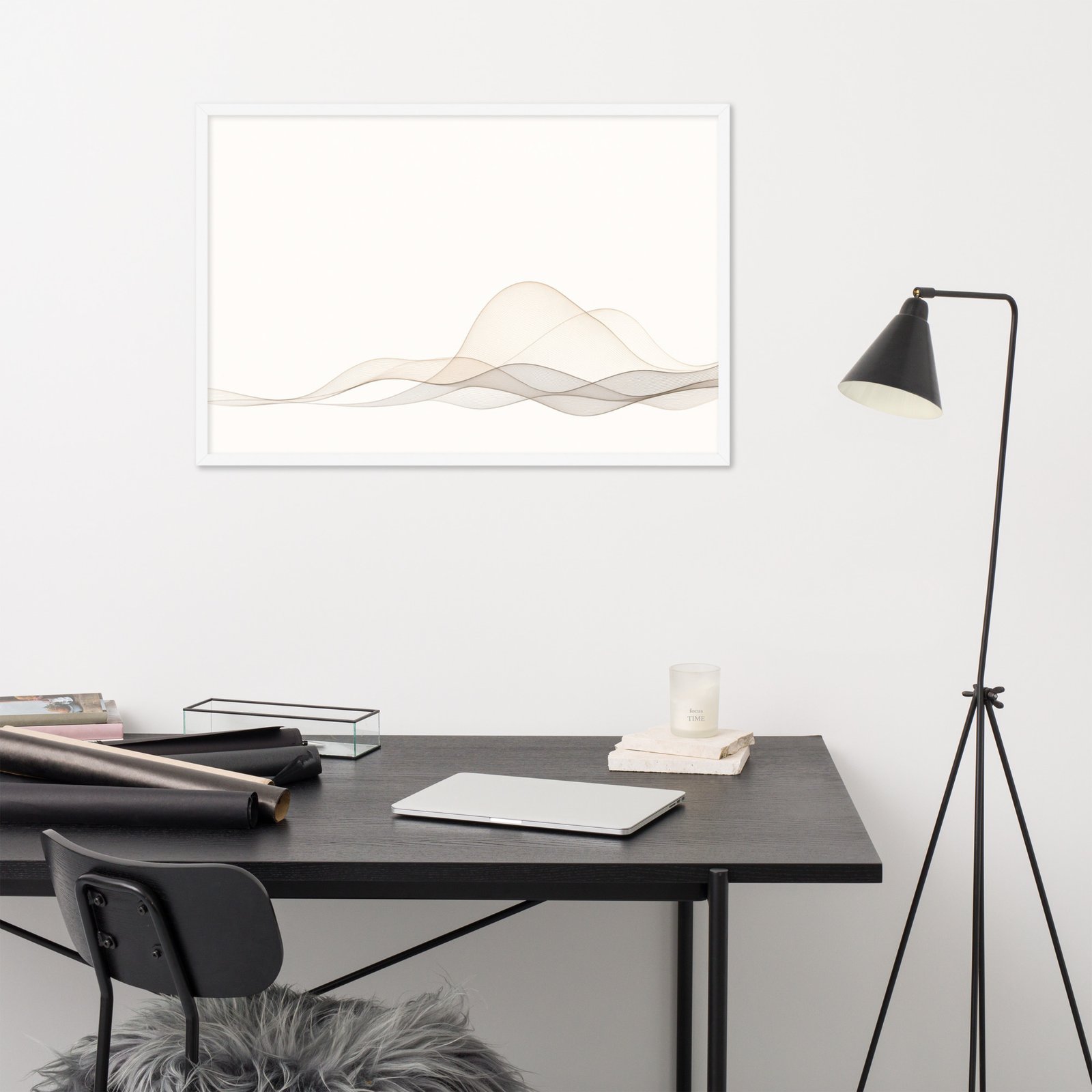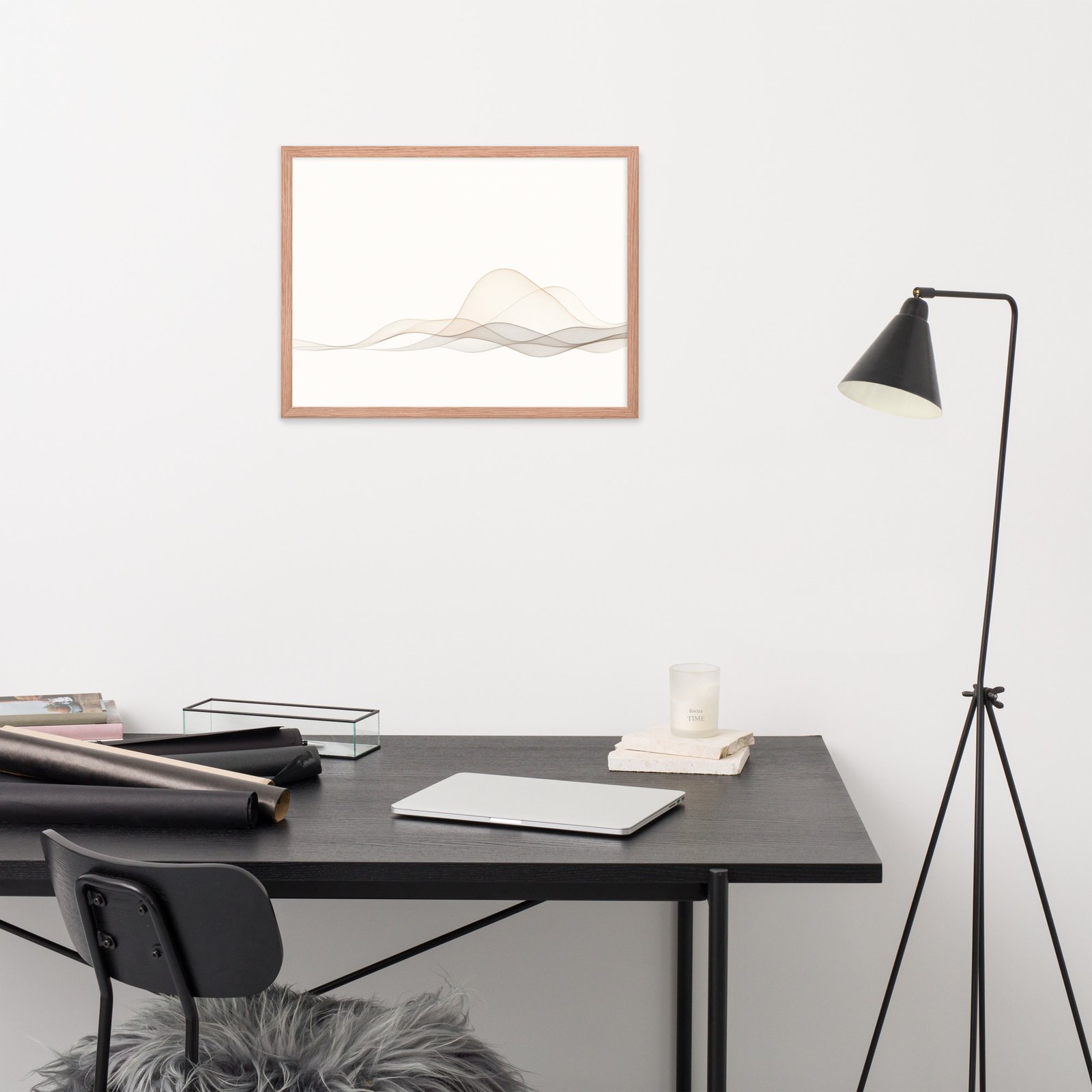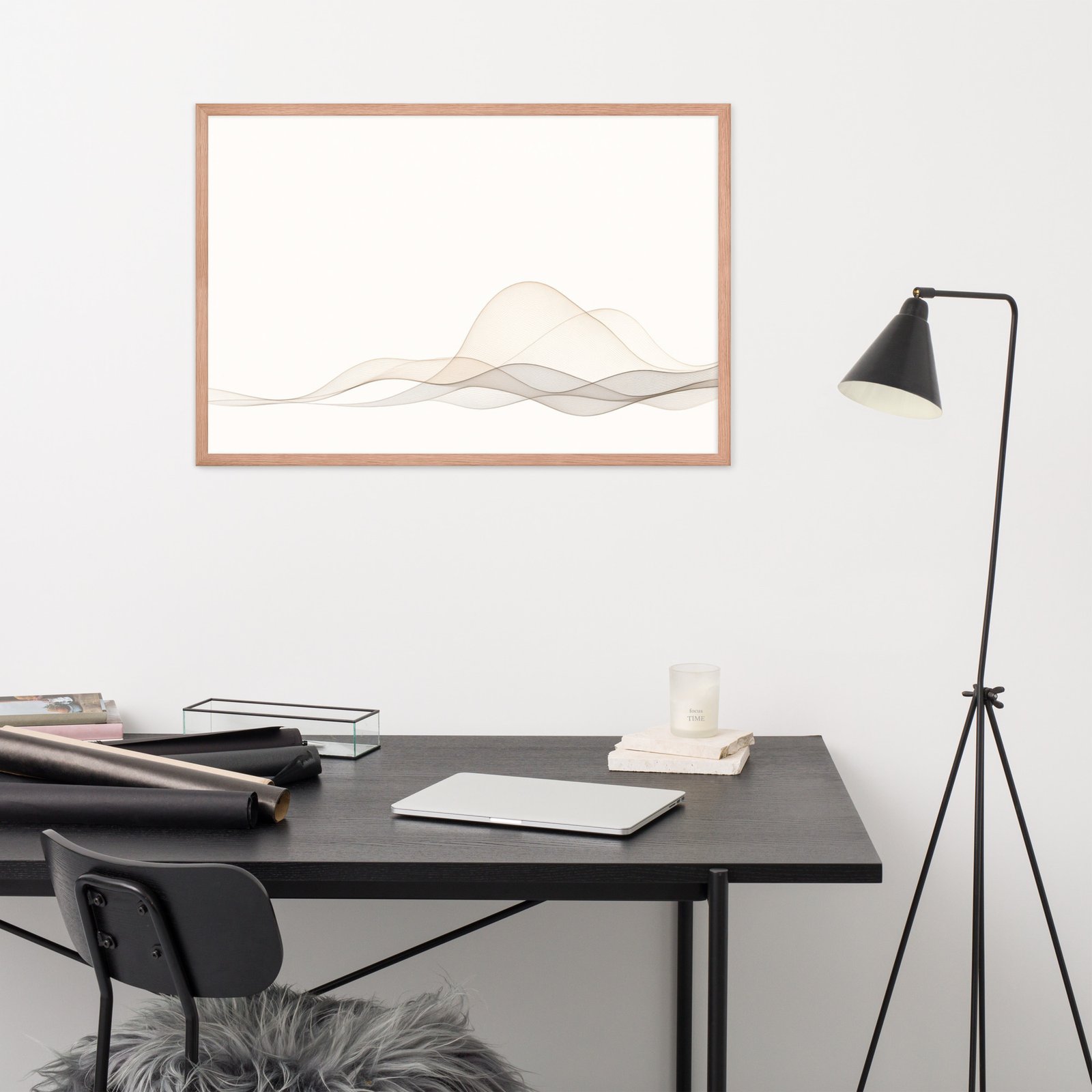 The artwork’s gentle wave structure resembles abstract landscapes or soft horizon lines, giving it a refined, meditative quality. Its clean neutral palette blends effortlessly with minimalist, Japandi, Scandinavian, and contemporary decor styles.