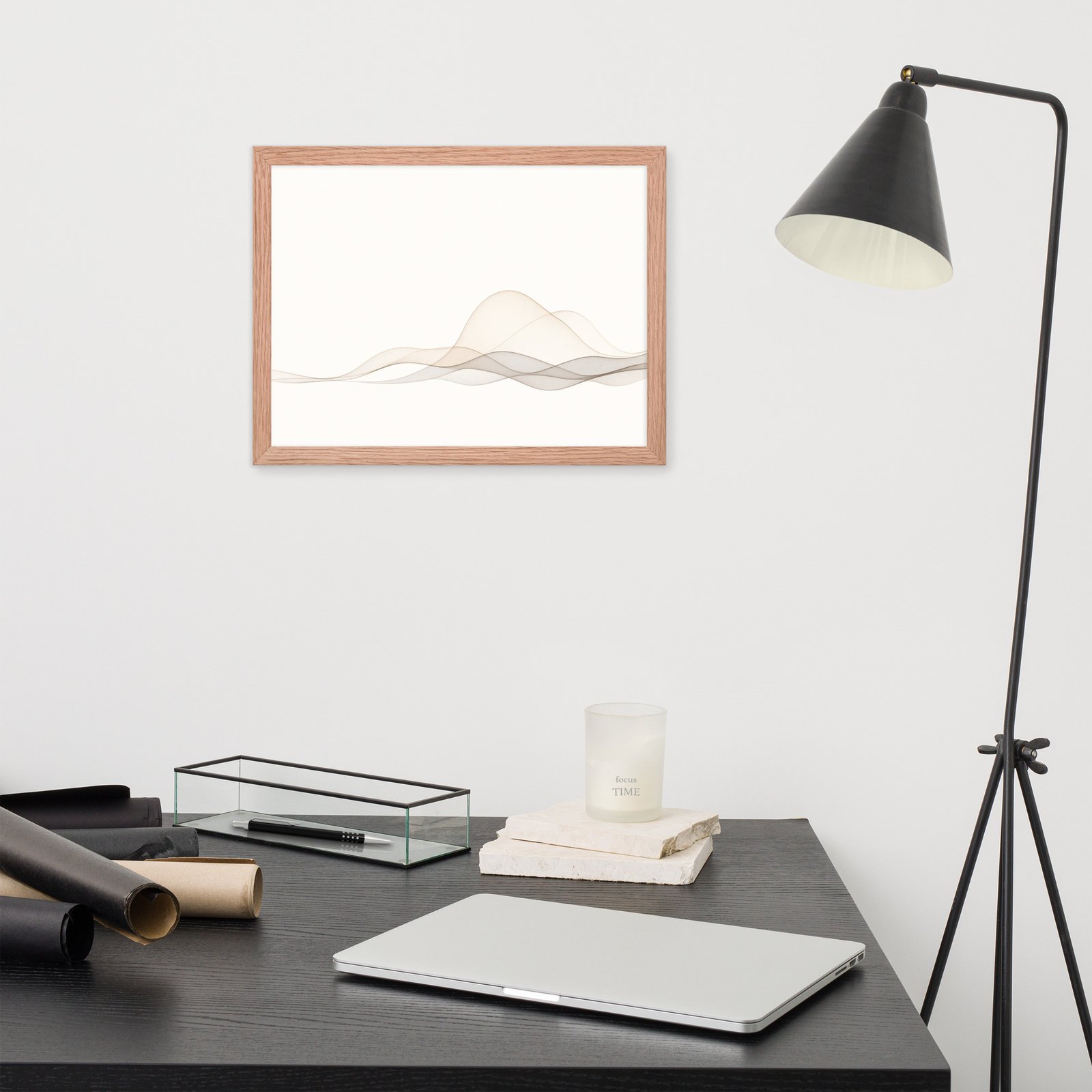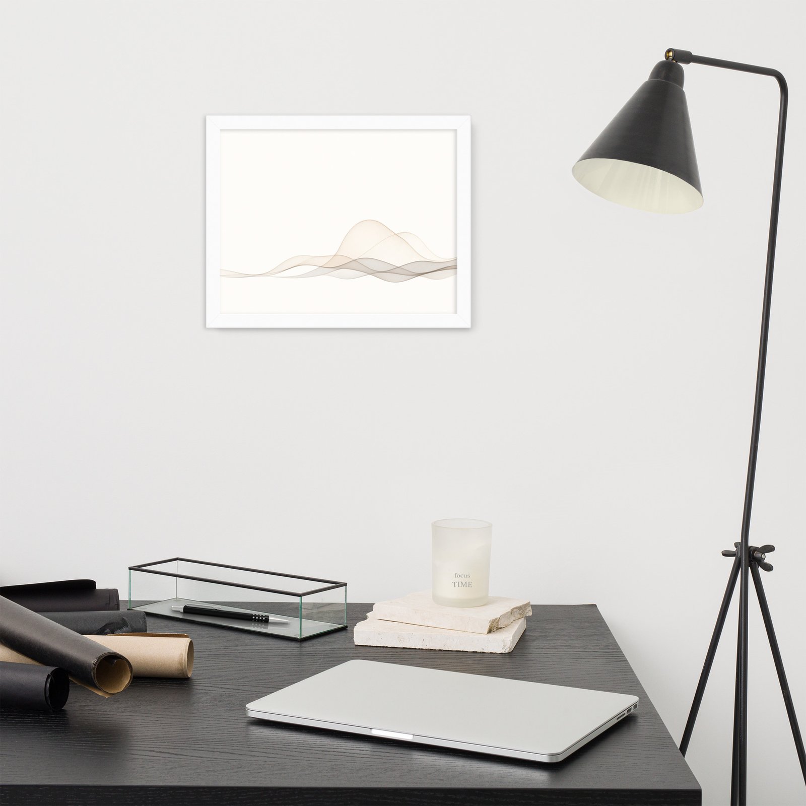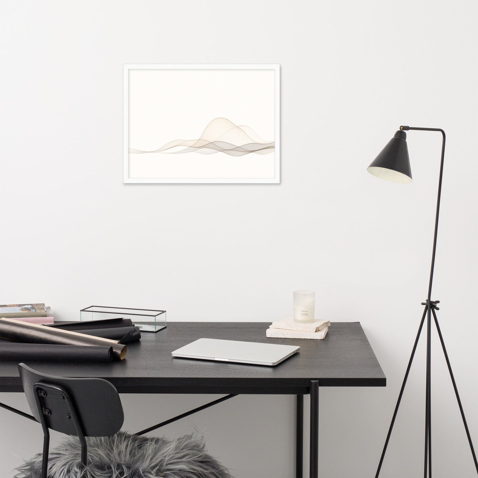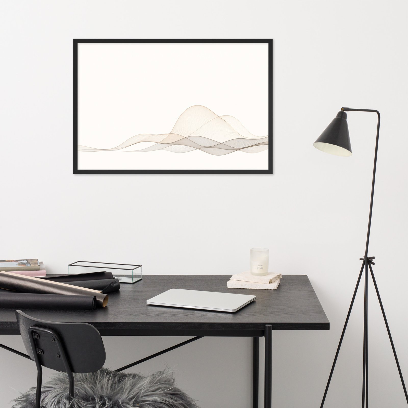The artwork’s gentle wave structure resembles abstract landscapes or soft horizon lines, giving it a refined, meditative quality. Its clean neutral palette blends effortlessly with minimalist, Japandi, Scandinavian, and contemporary decor styles.